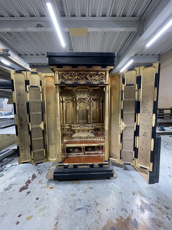当社工場で全て塗り替え金箔押し直しなど、新品同様に生まれ変わることが出来ました。
